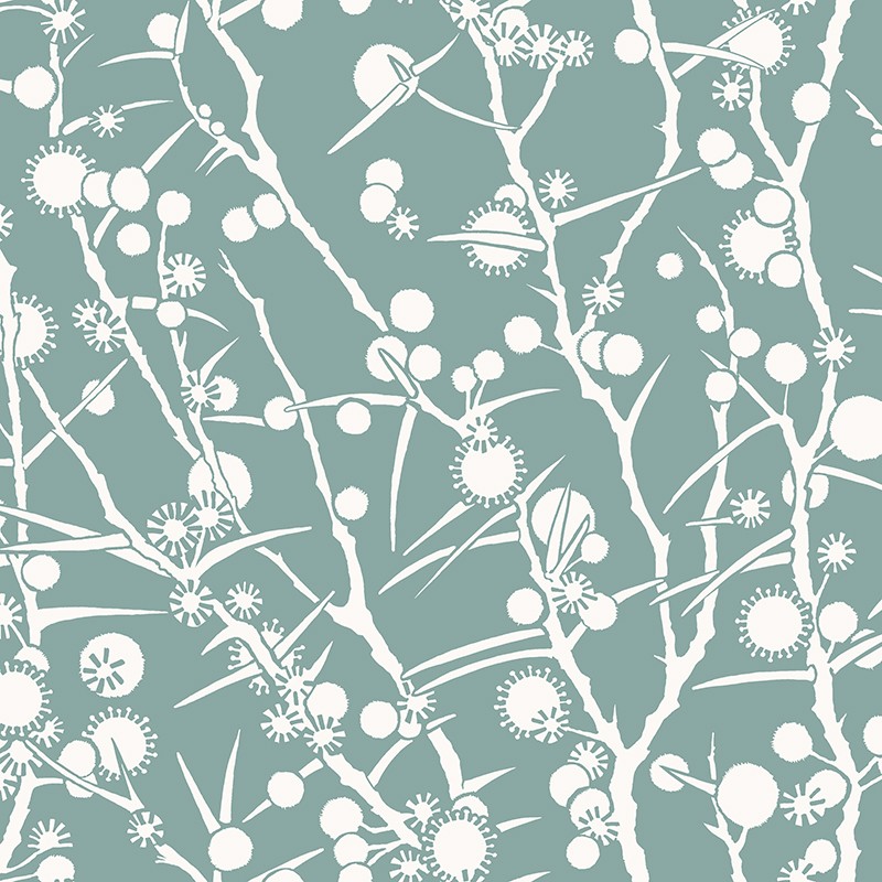 Fabricnation - Acacia - Blue Sage on White
