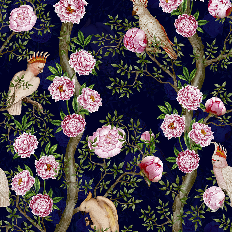 Uta Naumann - Cockatoos in Chinoiserie Garden Navy