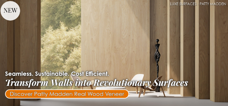 Explore Patty Madden Real Wood Veneer What sets this collection apart is the patent-pending process that seamlessly joins the sequenced ends of raw wood sheets into large, continuous rolls. This innovation offers design firms and architects an unprecedented level of freedom — supporting custom staining, scaling seamlessly to exceptionally tall ceilings in theatres and atriums, and creating cost-efficient installations by eliminating unsightly end matches. [ Read more ]